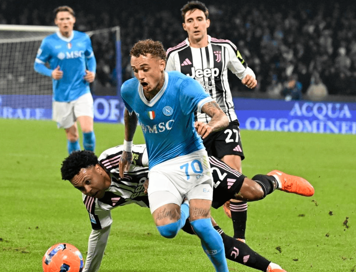 本场比赛中,那不勒斯选择了343阵型。内雷斯、霍伊伦和诺阿-朗组成了锋线三叉戟。中场方面,迪洛伦佐、埃尔马斯、麦克托米奈和奥利韦拉四人共同出击。后防线则由比克马、拉赫马尼和布翁焦尔诺三名中卫构成。门将位置由瓦尼亚-米林科维奇-萨维奇担任,而波利塔诺和斯皮纳佐拉则坐在替补席上待命。比赛刚开始不久,麦克托米奈便在门前抢点,试图头球攻门,但可惜顶偏了。第7分钟,那个梦幻开局终于到来!内雷斯在禁区右侧送出横传,霍伊伦及时跟进,在门前包抄射门成功,球应声入网,那不勒斯1-0领先!第20分钟,尤文图斯的伊尔迪兹尝试一脚远射,但将球踢飞了。6分钟后,迪洛伦佐的一记头球攻门被尤文门将神奇化解。紧接着,凯利也在门前浪费了一个不错的机会。上半场临近结束时,麦克托米奈再次头球攻门,但不幸击中立柱。半场结束,那不勒斯以1-0领先。下半场易边再战。第49分钟,霍伊伦突入禁区,大力抽射,可惜被门将扑出。6分钟后,麦克托米奈的一记任意球射门偏出。第59分钟,尤文图斯终于扳平了比分。伊尔迪兹在禁区右侧小角度低射远角,球进了,1-1!然而,第78分钟,那不勒斯再度领先!还是霍伊伦,他在门前争顶头球,将球顶进网内,梅开二度,2-1!比赛进入最后时刻,尤文图斯的热格罗瓦有机会绝平,但他的射门被门将成功没收。最终,那不勒斯以2-1战胜了尤文图斯。在这场胜利后,孔蒂带领那不勒斯在各项赛事中迎来了五连胜。随着这场胜利,那不勒斯的联赛积分达到了31分,超过了积30分的国际米兰,登上了积分榜首位。AC米兰积28分排名第三,但他们比那不勒斯少踢一场比赛。罗马则以27分排在第四位。